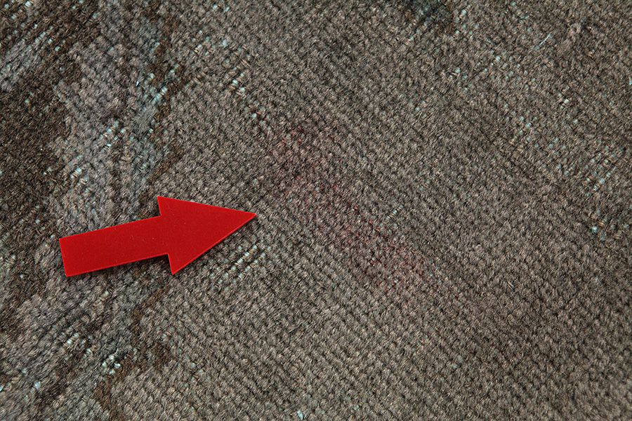 The colour of the carpet has faded in a small part of the pile