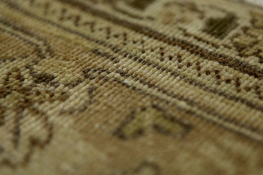 Abrash: Due to the different amount of grease in the wool and the added salt during the process of dyeing, the wool has got a varying colour absorbance. This is not very visible before weaving. During the weaving though, lines of the same colour are formed in the carpet. This is called Abrash (which in Farsi means little cloud) and it shows that the wool was not manufactured using chemical means and marks the naturalness and authenticity of the carpets. Examples
