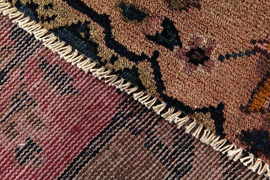 Abrash: Due to the different amount of grease in the wool and the added salt during the process of dyeing, the wool has got a varying colour absorbance. This is not very visible before weaving. During the weaving though, lines of the same colour are formed in the carpet. This is called Abrash (which in Farsi means little cloud) and it shows that the wool was not manufactured using chemical means and marks the naturalness and authenticity of the carpets. Examples