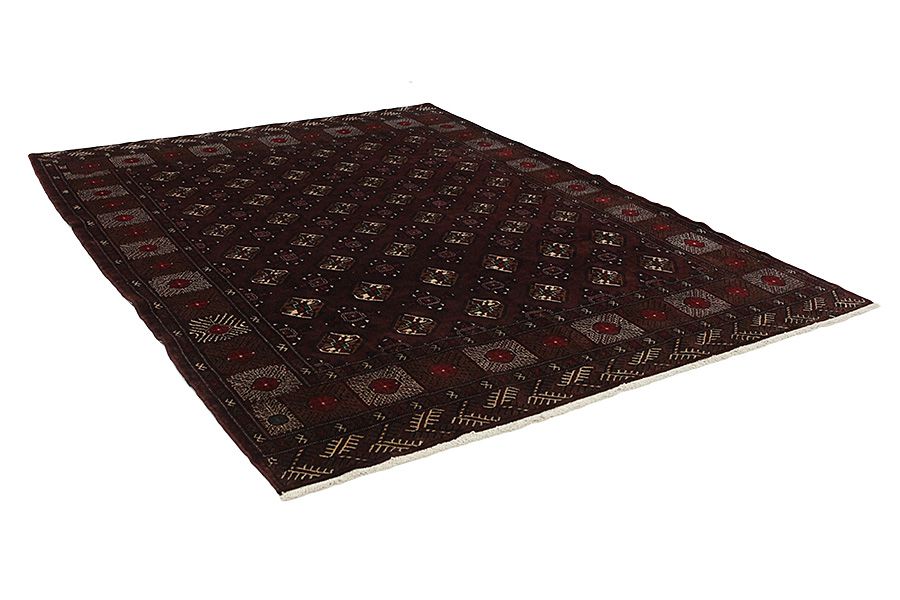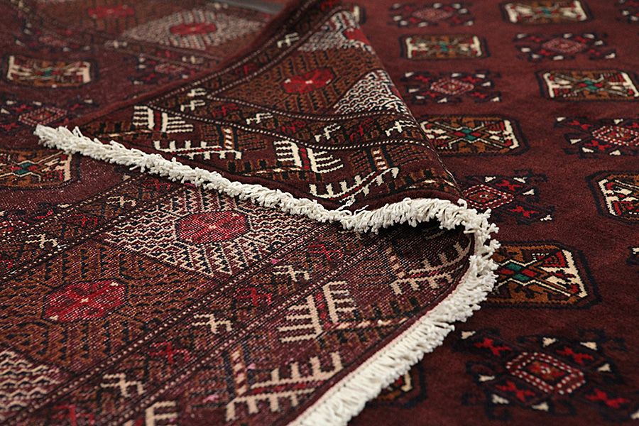 Bokhara Carpets : The Bokhara carpets are woven in Belutchistan and in different regions of Uzbekistan, Turkmenistan and Afghanistan. Turkmen carpets include Basjir, Salor, Tekke-Bochara, Jolam-Bocharaband, Ersari, Tjaudor and Yomut which are examples of the carpet style called Bokhara. Some areas of Turkmenistan where carpets are woven are Ashkabad, Bakharden, Geok-Tepe, Kizyl-Arvat and Merv. The deep red and the whole range of red from purple to brown are the dominant colors with repeating octagons, rhombi, yomut motifs being characteristic of these carpets. The warp of the carpets is always wool.