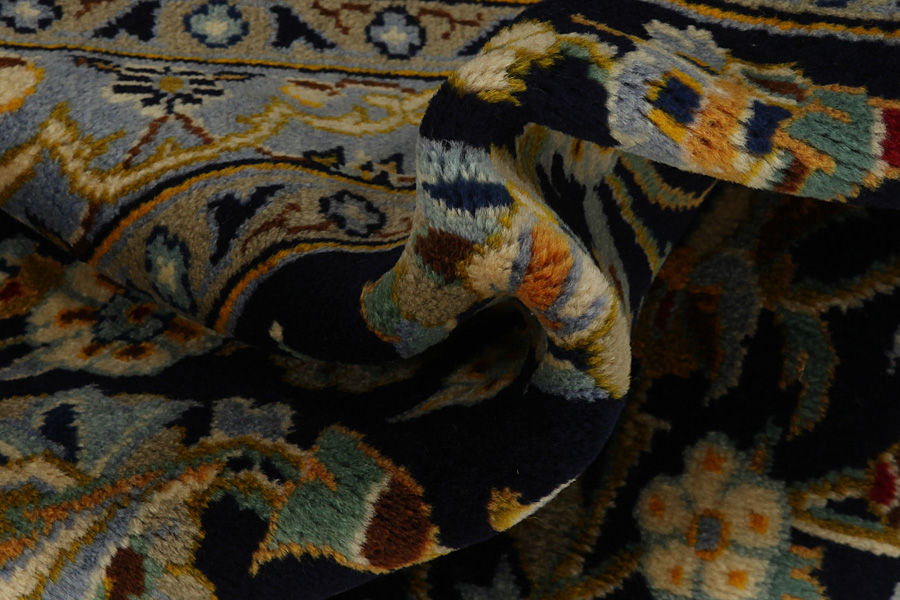 Abrash: Due to the different amount of grease in the wool and the added salt during the process of dyeing, the wool has got a varying colour absorbance. This is not very visible before weaving. During the weaving though, lines of the same colour are formed in the carpet. This is called Abrash (which in Farsi means little cloud) and it shows that the wool was not manufactured using chemical means and marks the naturalness and authenticity of the carpets. Examples