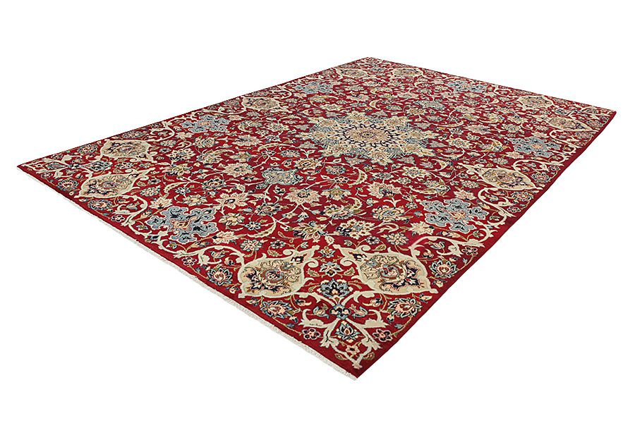 Isfahan Carpets : In the centre of Iran among the Zagros Mountains and the desert, lies the city of Isfahan. Nowadays it is an important industrial city with a population of 1.2 million. The town is an architectural masterpiece. The old carpets of Isfahan in contrast with the newer ones didn't have got a central medallion. The entire surface of the carpet was filled with elaborate spiral flowers and flower palmettes. The newer Isfahan rugs and carpets cannot be compared with those wonderful old specimens which were manufactured exclusively for nobles. But continuing the tradition, today's carpets of Isfahan also have a very fine weave and are clipped very short to reveal their design more clearly. In the weaving they also use silk to highlight certain areas of the design, especially in flowers. The warp is made of silk or cotton.