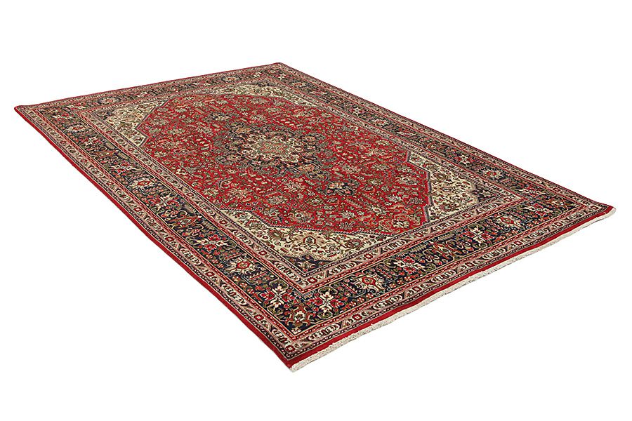 Tabriz Carpets : The city of Tabriz is the capital of Azerbaijan province in Northwestern Iran. Until the end of the caravans era it was the most important centre for trade and carpet weaving. Tabriz supplied the West with masterpieces that were made by renowned and very capable weavers. Their high quality of Tabriz carpets made them renowned in world markets. Many workshops where created where hand-woven carpets with very high density knots and high quality materials where woven. Silk and fine quality wool establish these carpets as very high class. No other city in Persia produced such large quantity or variety of carpets. With or without a medallion, their designs are full of imagination and individuality. Flowers, scenes, stanzas of poems often decorate them. Their predominant colors are beige, blue and red.