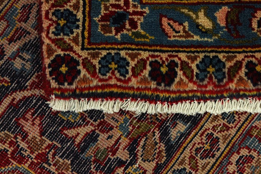 Abrash: Due to the different amount of grease in the wool and the added salt during the process of dyeing, the wool has got a varying colour absorbance. This is not very visible before weaving. During the weaving though, lines of the same colour are formed in the carpet. This is called Abrash (which in Farsi means little cloud) and it shows that the wool was not manufactured using chemical means and marks the naturalness and authenticity of the carpets. Examples