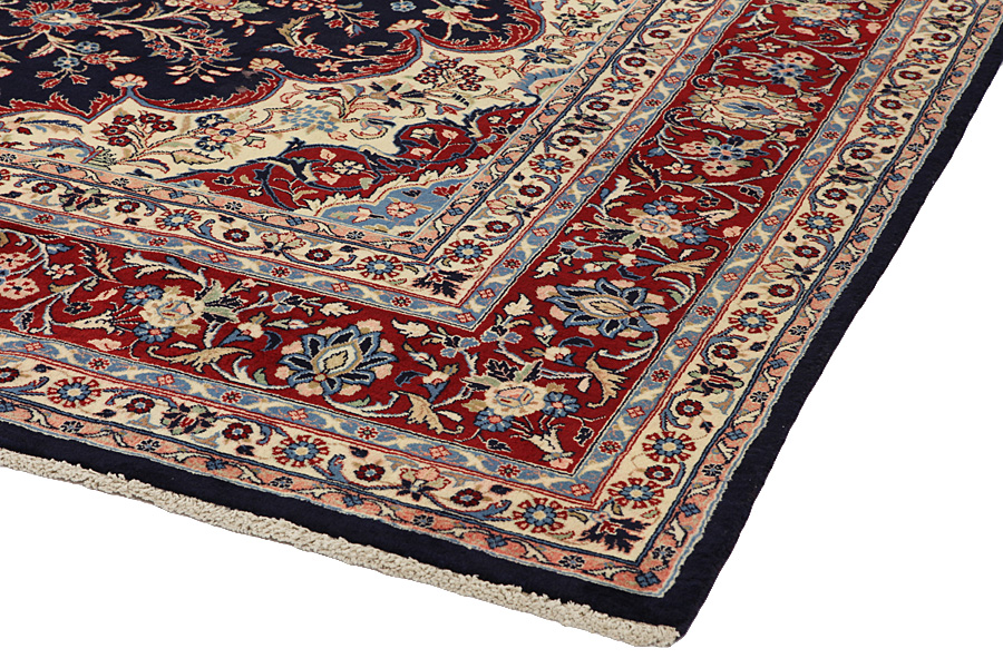 Kashan Carpets : Between Isfahan and Tehran, near the Dast-e-Kavir desert is the city of Kashan. The city is known for its handmade carpets, textiles and ceramics. The city where many commercial transactions take place is important as it is a resting place along the Silk Road. The famous Ardebil carpet that is found in the Victoria and Albert Museum is thought to have been woven in Kashan in the 16th century. Since 1800 began the organized production of handmade carpets from very renowned weavers in Kashan. The Kashan rugs gained a solid reputation and their success is due to three factors: the great variety of beautiful designs with fine colors, the soft shiny wool that gives a smooth surface to the carpets and the fact that many weavers come from nearby Isfahan who are capable and renowned carpet artisans.