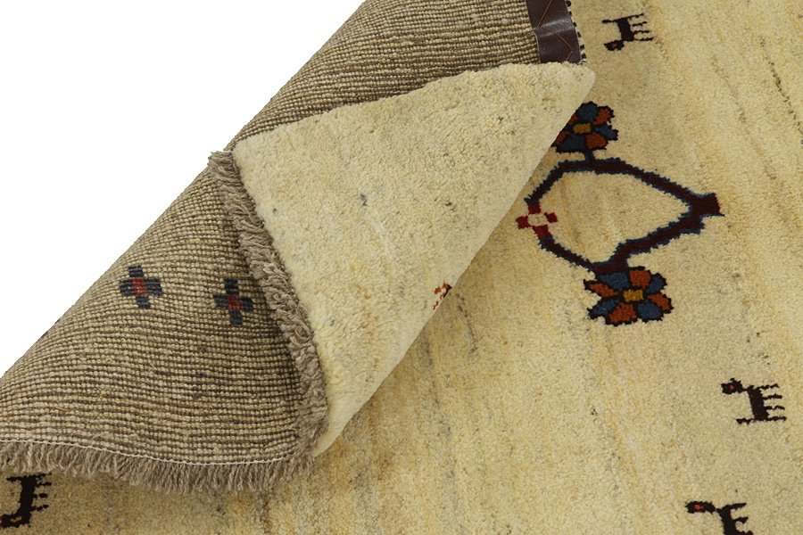 Gabbeh Carpets : Gabbeh in Farsi means natural, primitive. Carpets and textiles with this name are woven by the nomads Qashqai who roam about, or in villages in Southwestern Iran where they live. The yarns are processed and twisted by hand, painted with herbal colors and woven with a wool warp up to 2 cm thick. These carpets are simple, with few designs, or monochrome. The simple, linear designs with animals and human figures give them a contemporary look. Various names are given to Gabbeh carpets such as Basic, Amalehbaft, Kashkooli, Luribaft and Sumak. Gabbeh Kashkooli is a carpet with high knot density and thinner than ordinary Persian Gabbeh carpets. The Persian Gabbeh is very durable and its quality is very good.