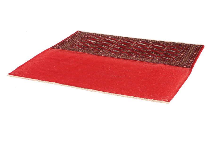 Bokhara Carpets : The Bokhara carpets are woven in Belutchistan and in different regions of Uzbekistan, Turkmenistan and Afghanistan. Turkmen carpets include Basjir, Salor, Tekke-Bochara, Jolam-Bocharaband, Ersari, Tjaudor and Yomut which are examples of the carpet style called Bokhara. Some areas of Turkmenistan where carpets are woven are Ashkabad, Bakharden, Geok-Tepe, Kizyl-Arvat and Merv. The deep red and the whole range of red from purple to brown are the dominant colors with repeating octagons, rhombi, yomut motifs being characteristic of these carpets. The warp of the carpets is always wool.