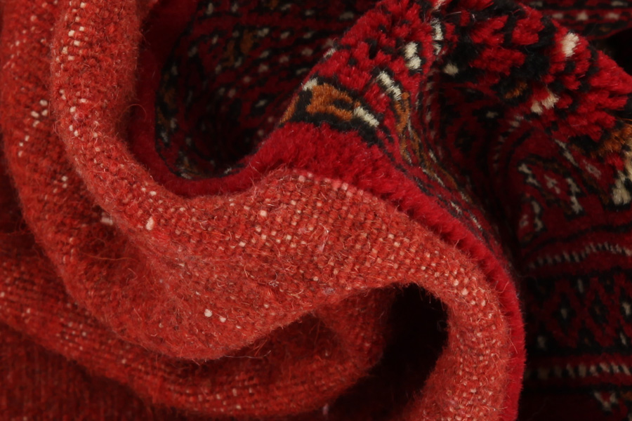 Bokhara Carpets : The Bokhara carpets are woven in Belutchistan and in different regions of Uzbekistan, Turkmenistan and Afghanistan. Turkmen carpets include Basjir, Salor, Tekke-Bochara, Jolam-Bocharaband, Ersari, Tjaudor and Yomut which are examples of the carpet style called Bokhara. Some areas of Turkmenistan where carpets are woven are Ashkabad, Bakharden, Geok-Tepe, Kizyl-Arvat and Merv. The deep red and the whole range of red from purple to brown are the dominant colors with repeating octagons, rhombi, yomut motifs being characteristic of these carpets. The warp of the carpets is always wool.