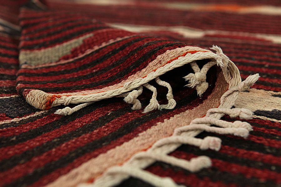 Flat woven at one or both ends of the carpet's width: In some carpets the nomads weave at fringes on a narrow Kilim one or both sides of the width, or they weave them artistically into small braids. It is a technique various weavers use for a greater durability or simply to demonstrate their skill. Examples