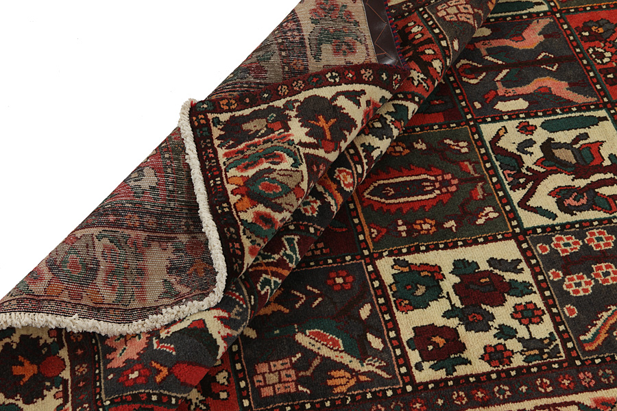 Bakhtiari Carpets : In the mountains Zagros, west of the city of Isfahan, around the town of Shahr-e-Kurd, live the nomads Bakhtiar. Their carpets are known for the design with various repeating squares in which flowers and animals are depicted. For this reason the design is called "garden"(Khesti). Their carpets are very durable with a dense weave and very good quality Persian wool coming from sheep grazing at a high altitude. The best Bakhtiar rugs and carpets with highest knot density are often called Bibibaff. Also in many designs we see influences from Isfahan carpets. (Boldaji - Feridan - Saman).