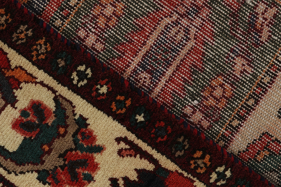 Abrash: Due to the different amount of grease in the wool and the added salt during the process of dyeing, the wool has got a varying colour absorbance. This is not very visible before weaving. During the weaving though, lines of the same colour are formed in the carpet. This is called Abrash (which in Farsi means little cloud) and it shows that the wool was not manufactured using chemical means and marks the naturalness and authenticity of the carpets. Examples