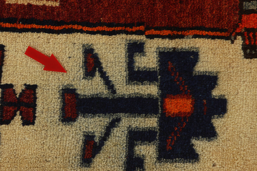 Abrash: Due to the different amount of grease in the wool and the added salt during the process of dyeing, the wool has got a varying colour absorbance. This is not very visible before weaving. During the weaving though, lines of the same colour are formed in the carpet. This is called Abrash (which in Farsi means little cloud) and it shows that the wool was not manufactured using chemical means and marks the naturalness and authenticity of the carpets. Examples