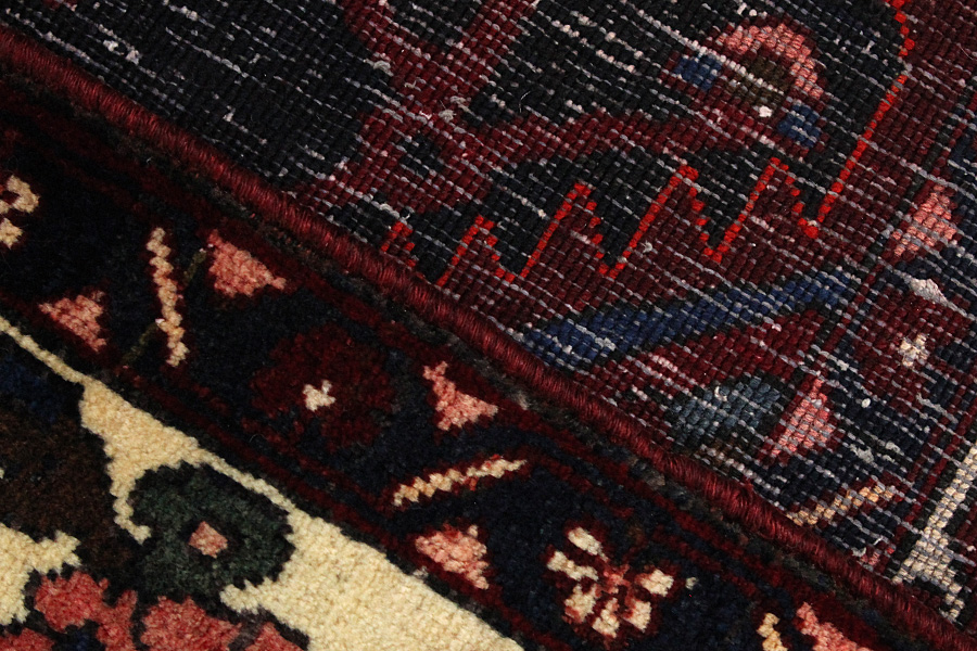 Abrash: Due to the different amount of grease in the wool and the added salt during the process of dyeing, the wool has got a varying colour absorbance. This is not very visible before weaving. During the weaving though, lines of the same colour are formed in the carpet. This is called Abrash (which in Farsi means little cloud) and it shows that the wool was not manufactured using chemical means and marks the naturalness and authenticity of the carpets. Examples