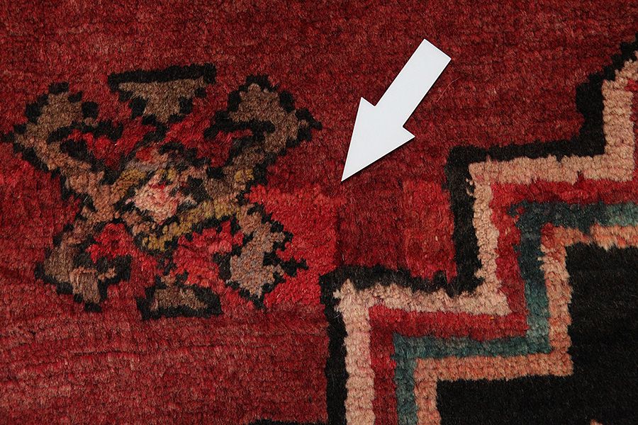 Abrash: Due to the different amount of grease in the wool and the added salt during the process of dyeing, the wool has got a varying colour absorbance. This is not very visible before weaving. During the weaving though, lines of the same colour are formed in the carpet. This is called Abrash (which in Farsi means little cloud) and it shows that the wool was not manufactured using chemical means and marks the naturalness and authenticity of the carpets. Examples
