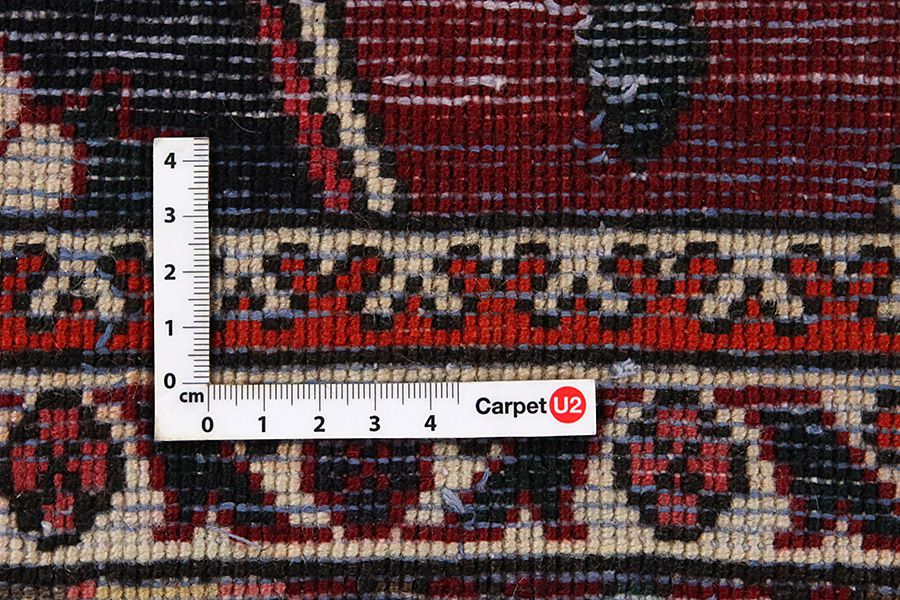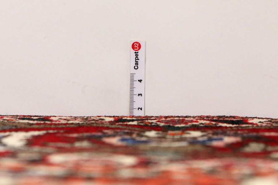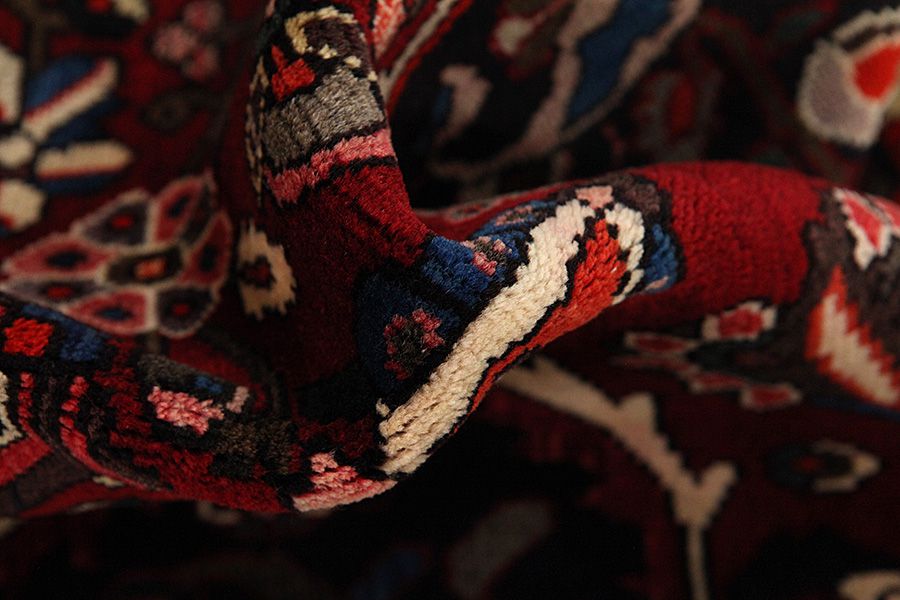 Abrash: Due to the different amount of grease in the wool and the added salt during the process of dyeing, the wool has got a varying colour absorbance. This is not very visible before weaving. During the weaving though, lines of the same colour are formed in the carpet. This is called Abrash (which in Farsi means little cloud) and it shows that the wool was not manufactured using chemical means and marks the naturalness and authenticity of the carpets. Examples