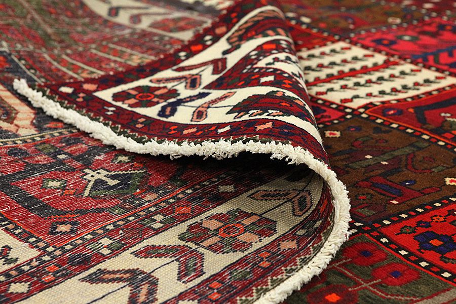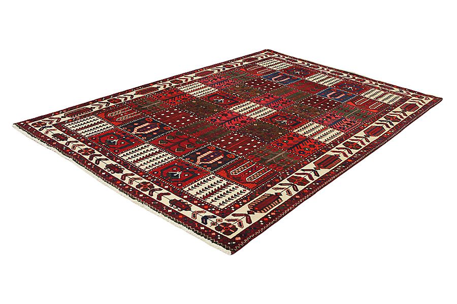 Bakhtiari Carpets : In the mountains Zagros, west of the city of Isfahan, around the town of Shahr-e-Kurd, live the nomads Bakhtiar. Their carpets are known for the design with various repeating squares in which flowers and animals are depicted. For this reason the design is called "garden"(Khesti). Their carpets are very durable with a dense weave and very good quality Persian wool coming from sheep grazing at a high altitude. The best Bakhtiar rugs and carpets with highest knot density are often called Bibibaff. Also in many designs we see influences from Isfahan carpets. (Boldaji - Feridan - Saman).