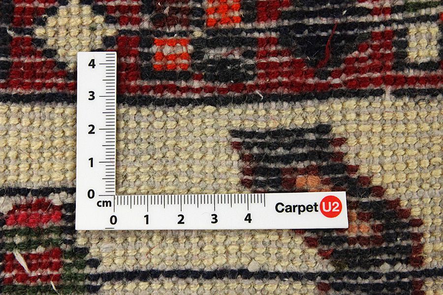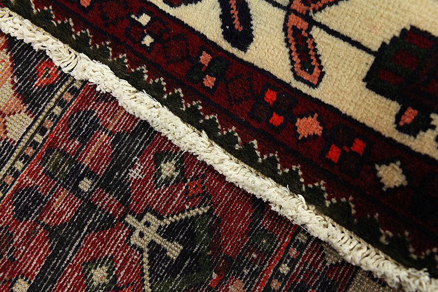 Abrash: Due to the different amount of grease in the wool and the added salt during the process of dyeing, the wool has got a varying colour absorbance. This is not very visible before weaving. During the weaving though, lines of the same colour are formed in the carpet. This is called Abrash (which in Farsi means little cloud) and it shows that the wool was not manufactured using chemical means and marks the naturalness and authenticity of the carpets. Examples