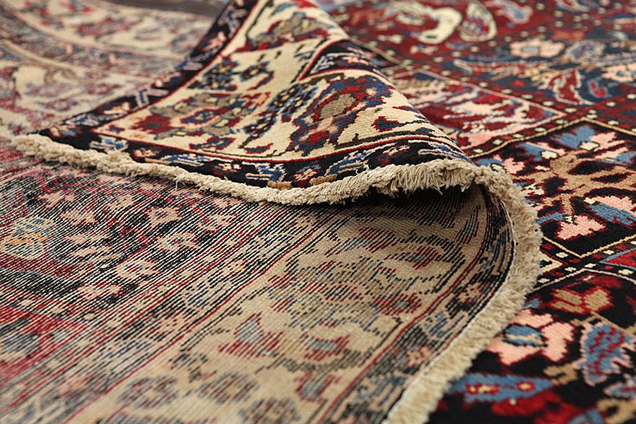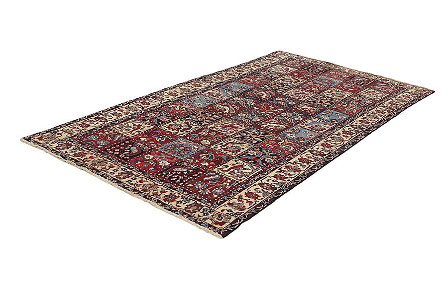 Bakhtiari Carpets : In the mountains Zagros, west of the city of Isfahan, around the town of Shahr-e-Kurd, live the nomads Bakhtiar. Their carpets are known for the design with various repeating squares in which flowers and animals are depicted. For this reason the design is called "garden"(Khesti). Their carpets are very durable with a dense weave and very good quality Persian wool coming from sheep grazing at a high altitude. The best Bakhtiar rugs and carpets with highest knot density are often called Bibibaff. Also in many designs we see influences from Isfahan carpets. (Boldaji - Feridan - Saman).