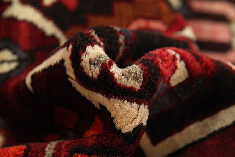 Abrash: Due to the different amount of grease in the wool and the added salt during the process of dyeing, the wool has got a varying colour absorbance. This is not very visible before weaving. During the weaving though, lines of the same colour are formed in the carpet. This is called Abrash (which in Farsi means little cloud) and it shows that the wool was not manufactured using chemical means and marks the naturalness and authenticity of the carpets. Examples