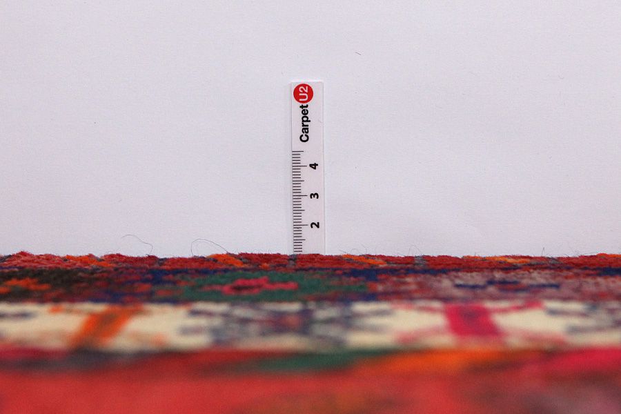 Abrash: Due to the different amount of grease in the wool and the added salt during the process of dyeing, the wool has got a varying colour absorbance. This is not very visible before weaving. During the weaving though, lines of the same colour are formed in the carpet. This is called Abrash (which in Farsi means little cloud) and it shows that the wool was not manufactured using chemical means and marks the naturalness and authenticity of the carpets. Examples