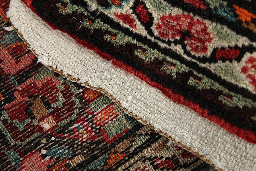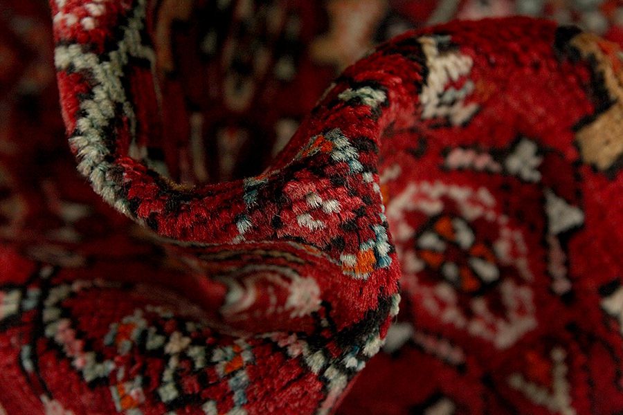 Abrash: Due to the different amount of grease in the wool and the added salt during the process of dyeing, the wool has got a varying colour absorbance. This is not very visible before weaving. During the weaving though, lines of the same colour are formed in the carpet. This is called Abrash (which in Farsi means little cloud) and it shows that the wool was not manufactured using chemical means and marks the naturalness and authenticity of the carpets. Examples