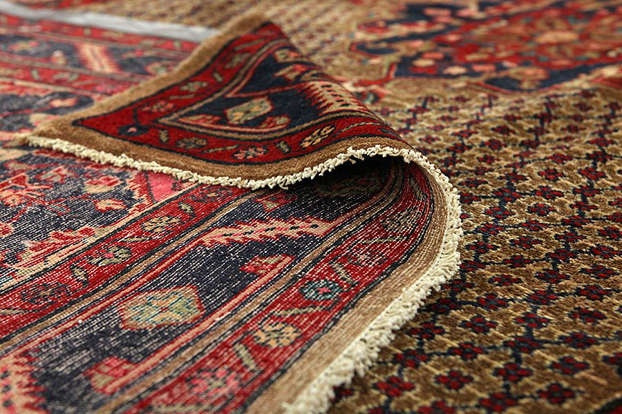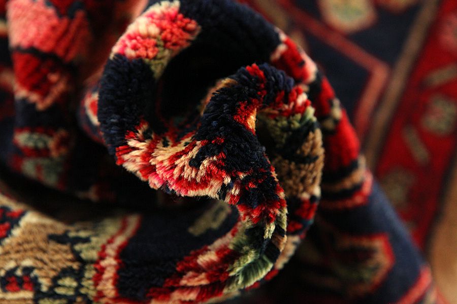 Abrash: Due to the different amount of grease in the wool and the added salt during the process of dyeing, the wool has got a varying colour absorbance. This is not very visible before weaving. During the weaving though, lines of the same colour are formed in the carpet. This is called Abrash (which in Farsi means little cloud) and it shows that the wool was not manufactured using chemical means and marks the naturalness and authenticity of the carpets. Examples