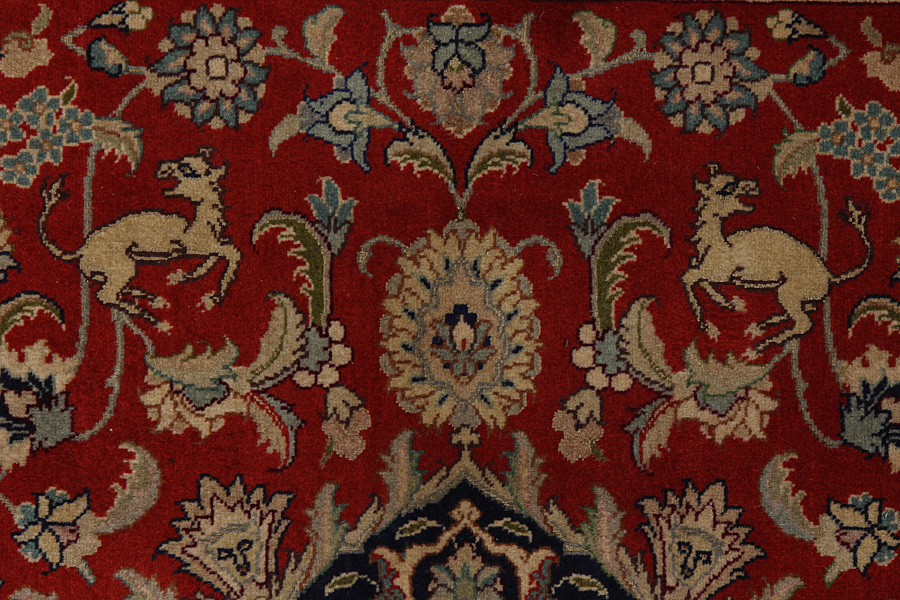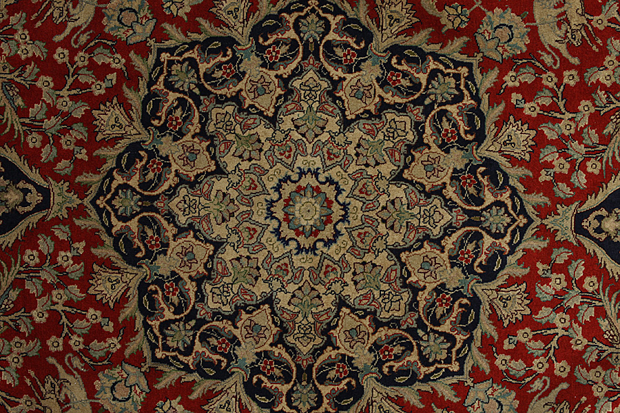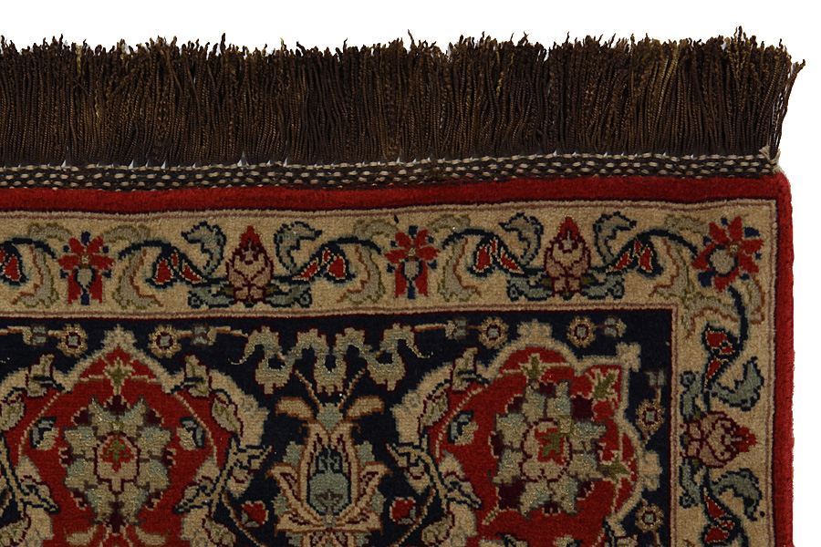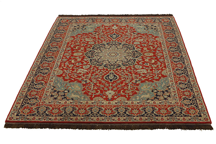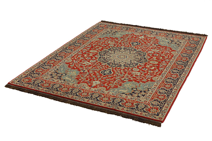 Isfahan Carpets : In the centre of Iran among the Zagros Mountains and the desert, lies the city of Isfahan. Nowadays it is an important industrial city with a population of 1.2 million. The town is an architectural masterpiece. The old carpets of Isfahan in contrast with the newer ones didn't have got a central medallion. The entire surface of the carpet was filled with elaborate spiral flowers and flower palmettes. The newer Isfahan rugs and carpets cannot be compared with those wonderful old specimens which were manufactured exclusively for nobles. But continuing the tradition, today's carpets of Isfahan also have a very fine weave and are clipped very short to reveal their design more clearly. In the weaving they also use silk to highlight certain areas of the design, especially in flowers. The warp is made of silk or cotton.