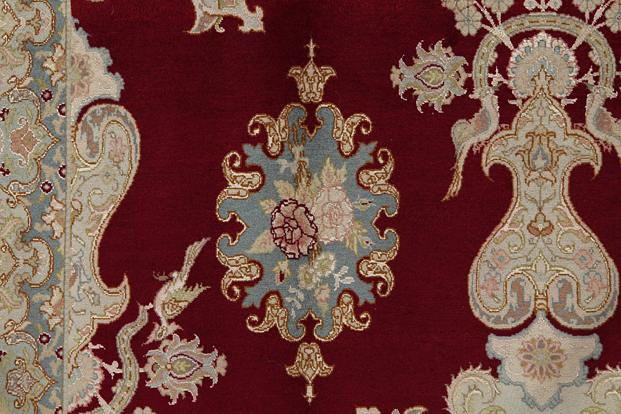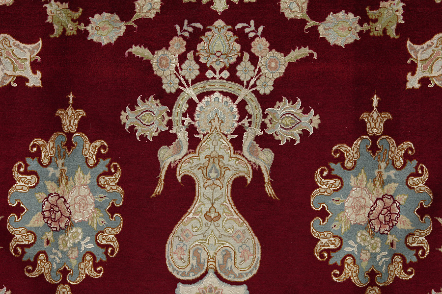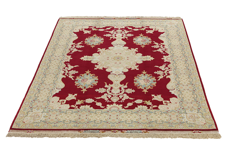 Tabriz Carpets : The city of Tabriz is the capital of Azerbaijan province in Northwestern Iran. Until the end of the caravans era it was the most important centre for trade and carpet weaving. Tabriz supplied the West with masterpieces that were made by renowned and very capable weavers. Their high quality of Tabriz carpets made them renowned in world markets. Many workshops where created where hand-woven carpets with very high density knots and high quality materials where woven. Silk and fine quality wool establish these carpets as very high class. No other city in Persia produced such large quantity or variety of carpets. With or without a medallion, their designs are full of imagination and individuality. Flowers, scenes, stanzas of poems often decorate them. Their predominant colors are beige, blue and red.