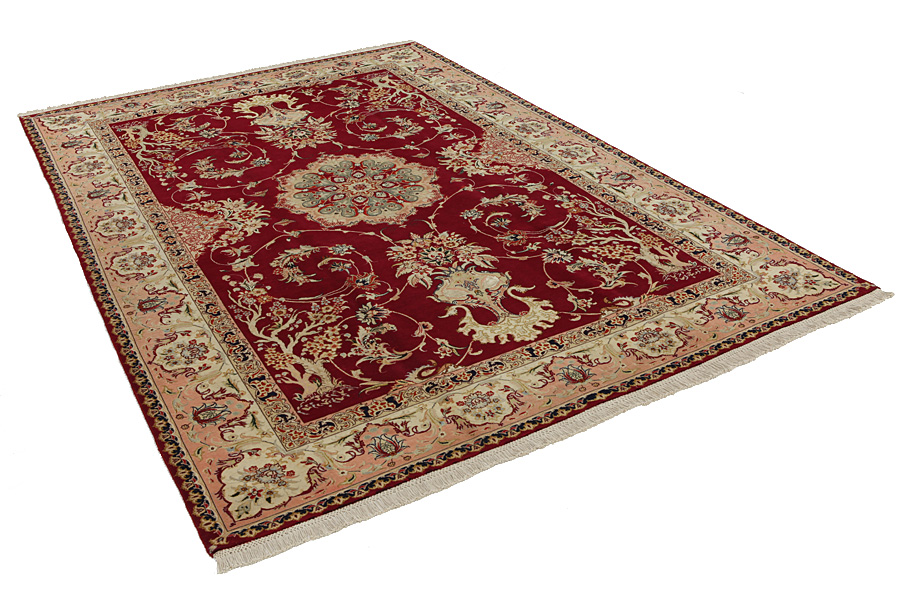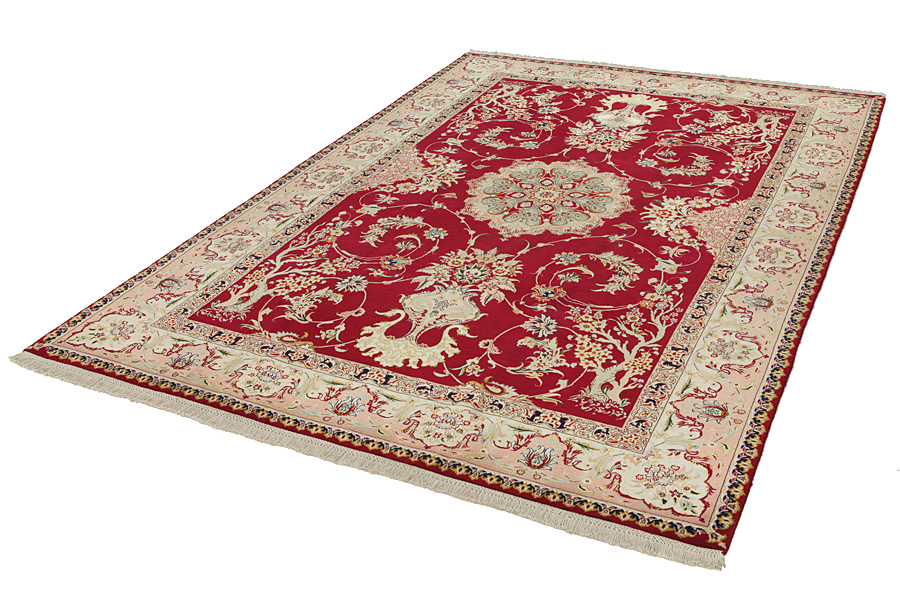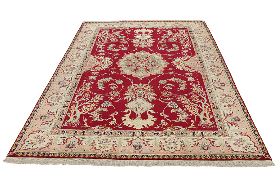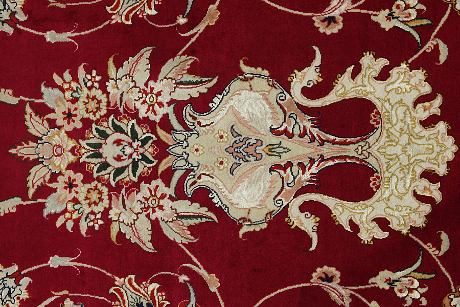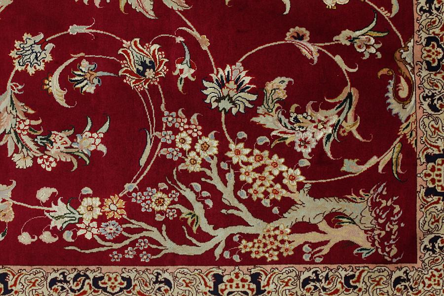 Tabriz Carpets : The city of Tabriz is the capital of Azerbaijan province in Northwestern Iran. Until the end of the caravans era it was the most important centre for trade and carpet weaving. Tabriz supplied the West with masterpieces that were made by renowned and very capable weavers. Their high quality of Tabriz carpets made them renowned in world markets. Many workshops where created where hand-woven carpets with very high density knots and high quality materials where woven. Silk and fine quality wool establish these carpets as very high class. No other city in Persia produced such large quantity or variety of carpets. With or without a medallion, their designs are full of imagination and individuality. Flowers, scenes, stanzas of poems often decorate them. Their predominant colors are beige, blue and red.
