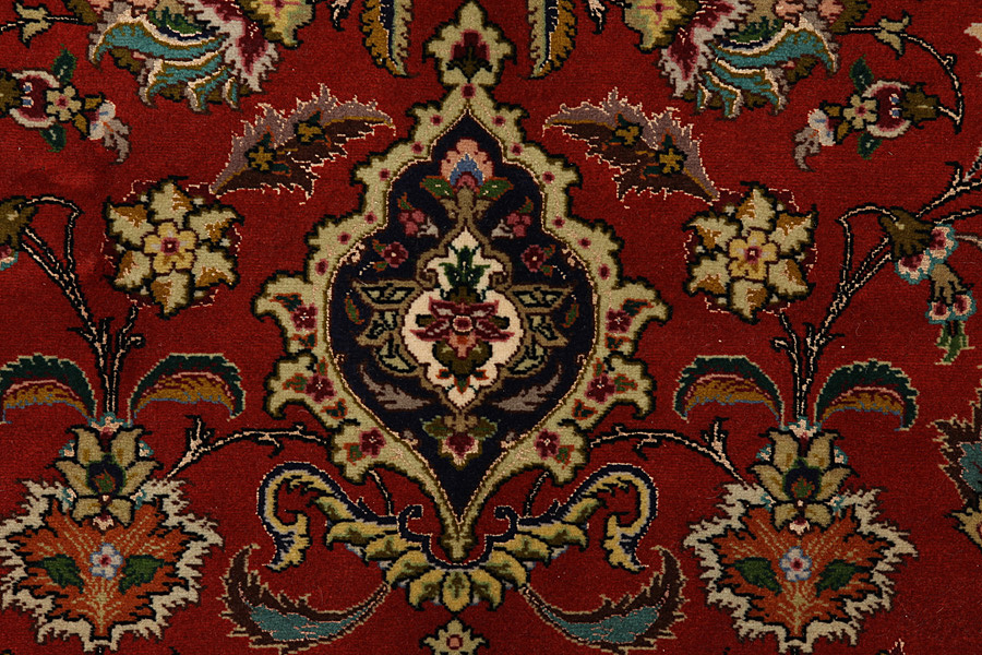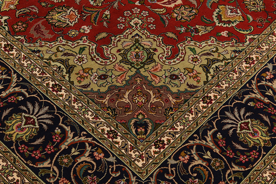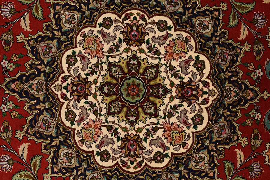 Tabriz Carpets : The city of Tabriz is the capital of Azerbaijan province in Northwestern Iran. Until the end of the caravans era it was the most important centre for trade and carpet weaving. Tabriz supplied the West with masterpieces that were made by renowned and very capable weavers. Their high quality of Tabriz carpets made them renowned in world markets. Many workshops where created where hand-woven carpets with very high density knots and high quality materials where woven. Silk and fine quality wool establish these carpets as very high class. No other city in Persia produced such large quantity or variety of carpets. With or without a medallion, their designs are full of imagination and individuality. Flowers, scenes, stanzas of poems often decorate them. Their predominant colors are beige, blue and red.