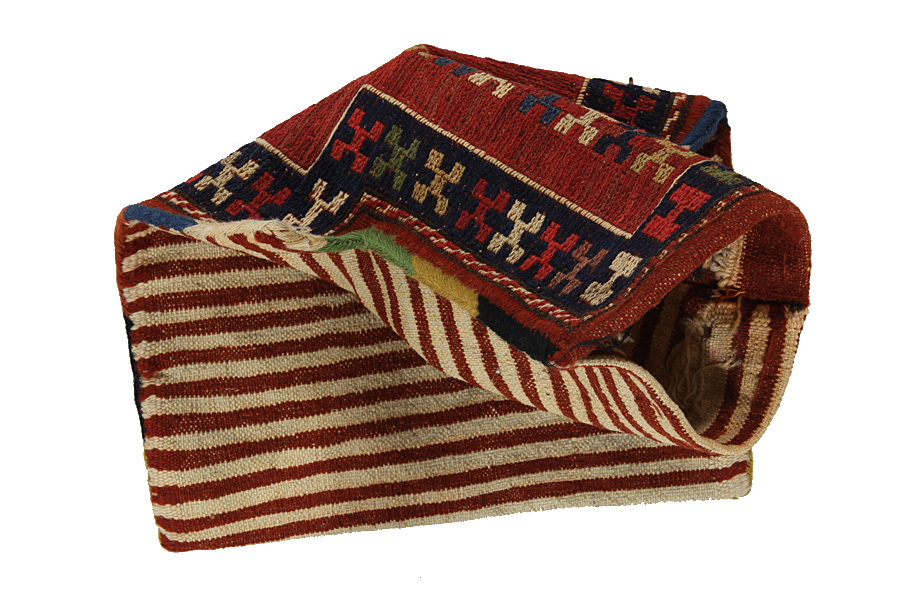 Saddle Bag Carpets : ​Horse saddle bags are made by Nomads for their own use. One can distinguish between the kilim-horse saddle bags and the knotted horse saddle bags. The front side of a knotted horse saddle bag is either knotted like a common carpet with knots or different mixed techniques are used. The side parts are often woven whereas in the middle part different weaving techniques such as kelim or Soumak are applied. The colors horse bags are dyed with are all natural and made by the Nomads themselves. Bags like these once carried everyday necessities for travelers on donkeys or horses. A delightful piece of art that provides a unique oriental atmosphere to your home. Horse saddle bags can be used as a seat cushion, as a floor cushion eg in front of your fireplace or as a wall decoration. Smaller horse saddle bags can be used as a newspaper holder to store newspapers or magazines when slung over a chair or sofa.