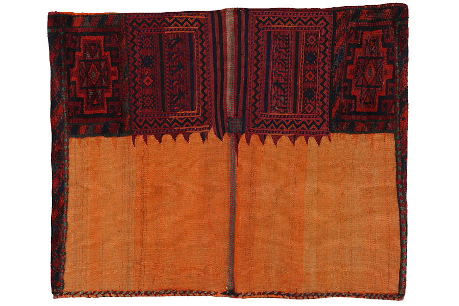 Saddle Bag Carpets : ​Horse saddle bags are made by Nomads for their own use. One can distinguish between the kilim-horse saddle bags and the knotted horse saddle bags. The front side of a knotted horse saddle bag is either knotted like a common carpet with knots or different mixed techniques are used. The side parts are often woven whereas in the middle part different weaving techniques such as kelim or Soumak are applied. The colors horse bags are dyed with are all natural and made by the Nomads themselves. Bags like these once carried everyday necessities for travelers on donkeys or horses. A delightful piece of art that provides a unique oriental atmosphere to your home. Horse saddle bags can be used as a seat cushion, as a floor cushion eg in front of your fireplace or as a wall decoration. Smaller horse saddle bags can be used as a newspaper holder to store newspapers or magazines when slung over a chair or sofa.