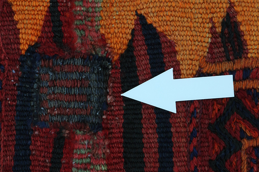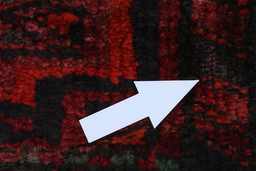 Abrash: Due to the different amount of grease in the wool and the added salt during the process of dyeing, the wool has got a varying colour absorbance. This is not very visible before weaving. During the weaving though, lines of the same colour are formed in the carpet. This is called Abrash (which in Farsi means little cloud) and it shows that the wool was not manufactured using chemical means and marks the naturalness and authenticity of the carpets. Examples