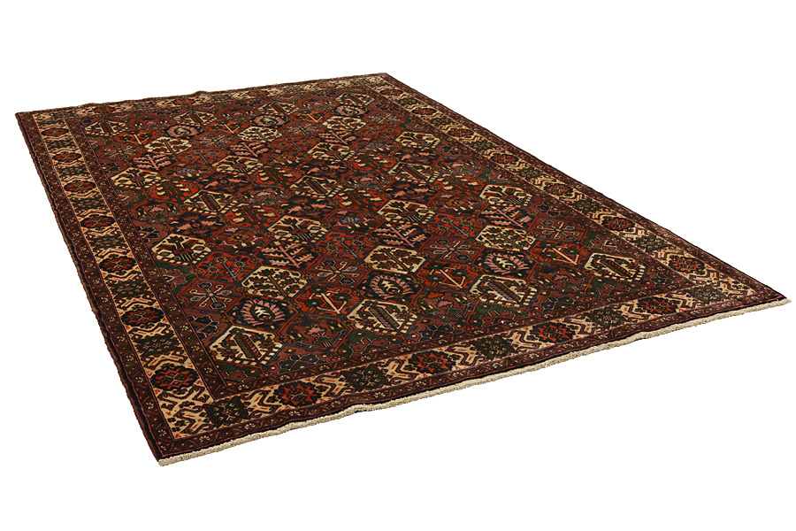 Bakhtiari Carpets : In the mountains Zagros, west of the city of Isfahan, around the town of Shahr-e-Kurd, live the nomads Bakhtiar. Their carpets are known for the design with various repeating squares in which flowers and animals are depicted. For this reason the design is called "garden"(Khesti). Their carpets are very durable with a dense weave and very good quality Persian wool coming from sheep grazing at a high altitude. The best Bakhtiar rugs and carpets with highest knot density are often called Bibibaff. Also in many designs we see influences from Isfahan carpets. (Boldaji - Feridan - Saman).