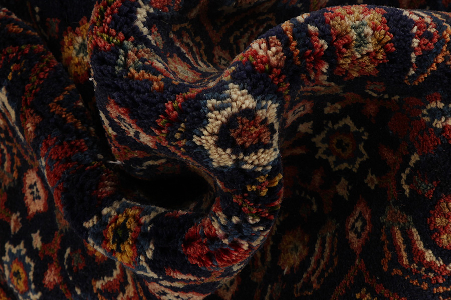 Abrash: Due to the different amount of grease in the wool and the added salt during the process of dyeing, the wool has got a varying colour absorbance. This is not very visible before weaving. During the weaving though, lines of the same colour are formed in the carpet. This is called Abrash (which in Farsi means little cloud) and it shows that the wool was not manufactured using chemical means and marks the naturalness and authenticity of the carpets. Examples