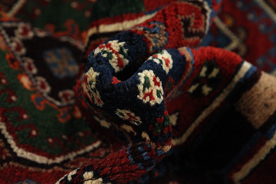 Qashqai Carpets : Qashqai carpets are woven by nomads who live in the mountainous areas of Southwest Persia, the provinces of Fars, Khuzestan, south of Isfahan and around the city Shiraz. Their carpets have a high knot density and a wide variety of designs, usually in deep red and blue colors. They weave carpets, Kilims and decorative textiles (ribbons, bags, etc.), which depict scenes from their lives with various representation of humans, animals, birds, trees and flowers. They also depict historical monuments, mostly from Persepolis.