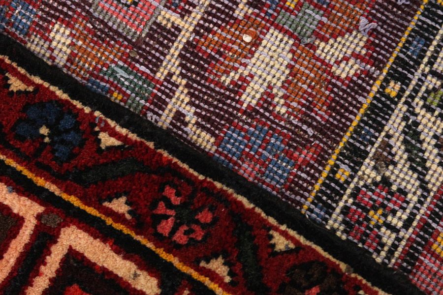 Abrash: Due to the different amount of grease in the wool and the added salt during the process of dyeing, the wool has got a varying colour absorbance. This is not very visible before weaving. During the weaving though, lines of the same colour are formed in the carpet. This is called Abrash (which in Farsi means little cloud) and it shows that the wool was not manufactured using chemical means and marks the naturalness and authenticity of the carpets. Examples