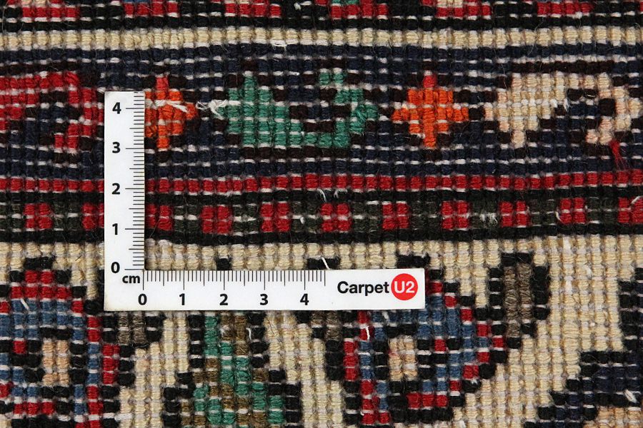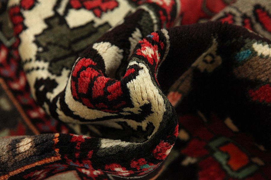 Abrash: Due to the different amount of grease in the wool and the added salt during the process of dyeing, the wool has got a varying colour absorbance. This is not very visible before weaving. During the weaving though, lines of the same colour are formed in the carpet. This is called Abrash (which in Farsi means little cloud) and it shows that the wool was not manufactured using chemical means and marks the naturalness and authenticity of the carpets. Examples
