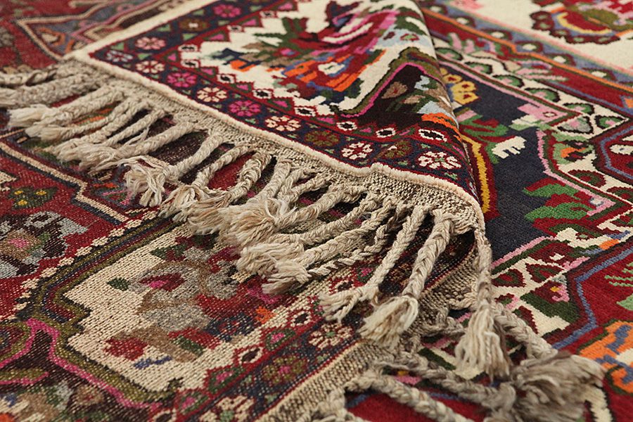 Bakhtiari Carpets : In the mountains Zagros, west of the city of Isfahan, around the town of Shahr-e-Kurd, live the nomads Bakhtiar. Their carpets are known for the design with various repeating squares in which flowers and animals are depicted. For this reason the design is called "garden"(Khesti). Their carpets are very durable with a dense weave and very good quality Persian wool coming from sheep grazing at a high altitude. The best Bakhtiar rugs and carpets with highest knot density are often called Bibibaff. Also in many designs we see influences from Isfahan carpets. (Boldaji - Feridan - Saman).