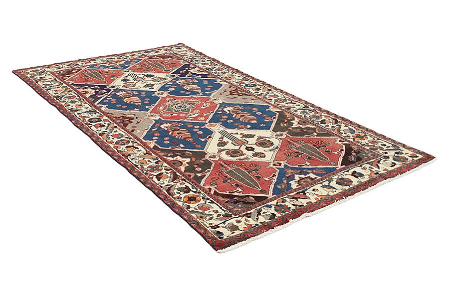 Bakhtiari Carpets : In the mountains Zagros, west of the city of Isfahan, around the town of Shahr-e-Kurd, live the nomads Bakhtiar. Their carpets are known for the design with various repeating squares in which flowers and animals are depicted. For this reason the design is called "garden"(Khesti). Their carpets are very durable with a dense weave and very good quality Persian wool coming from sheep grazing at a high altitude. The best Bakhtiar rugs and carpets with highest knot density are often called Bibibaff. Also in many designs we see influences from Isfahan carpets. (Boldaji - Feridan - Saman).