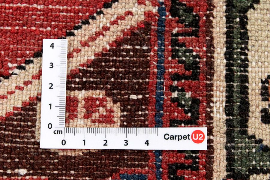 Abrash: Due to the different amount of grease in the wool and the added salt during the process of dyeing, the wool has got a varying colour absorbance. This is not very visible before weaving. During the weaving though, lines of the same colour are formed in the carpet. This is called Abrash (which in Farsi means little cloud) and it shows that the wool was not manufactured using chemical means and marks the naturalness and authenticity of the carpets. Examples